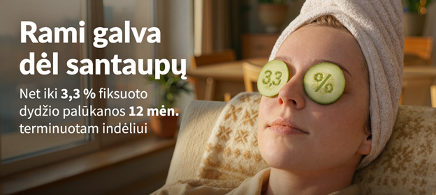 *Iki 2026 06 01 sudarykite 12 mėn. terminuotą indėlį kredito unijoje ir gaukite 3,3 % metinių palūkanų.